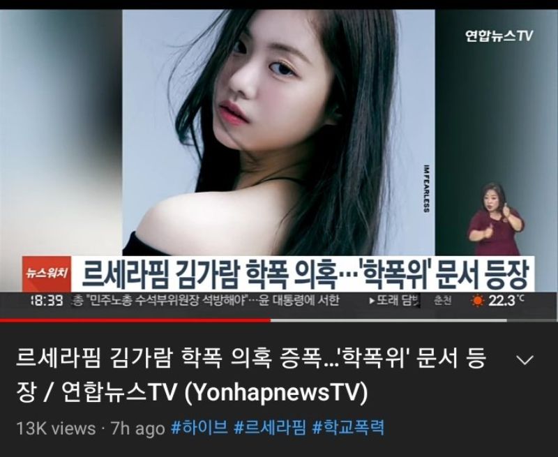 是噠,HYBE新女團LE SSERAFIM成員之一的金佳藍,一直陷入曾涉及校園霸凌的爭議,甚至成為了史上年紀最小,就登上了社會新聞的偶像👇