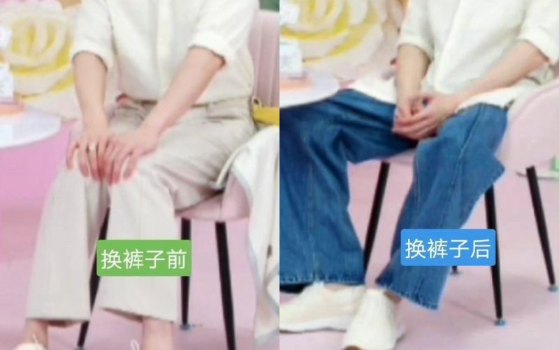 推測應該是褲襠部分有點緊,所以小白才立刻調整坐姿,而發現了這個問題的他,肉眼可見變得坐立不安…後面還拉了一條絲巾來遮擋👇