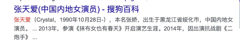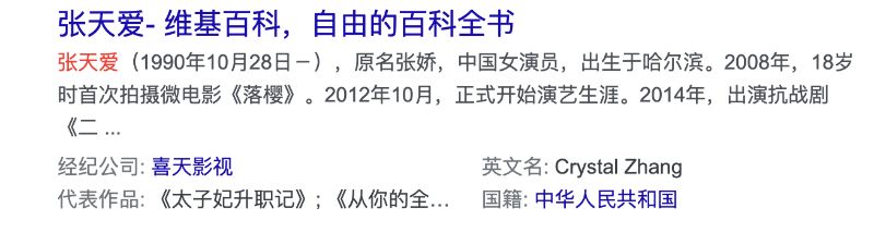 目前,百度百科中,張天愛的個人資料欄,已經不顯示出生年份👇