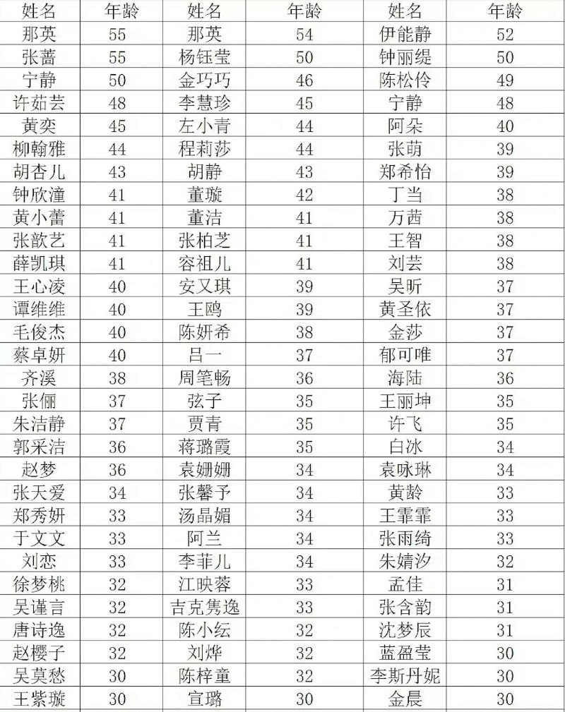 是噠,這就先來看看30位姐姐們的年齡吧👇