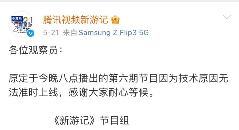 但網傳留言不止這一個,原定於5月21日上線的第六集節目,卻被官方發文告知,因技術問題無法准時上線,感謝大家耐心等待。