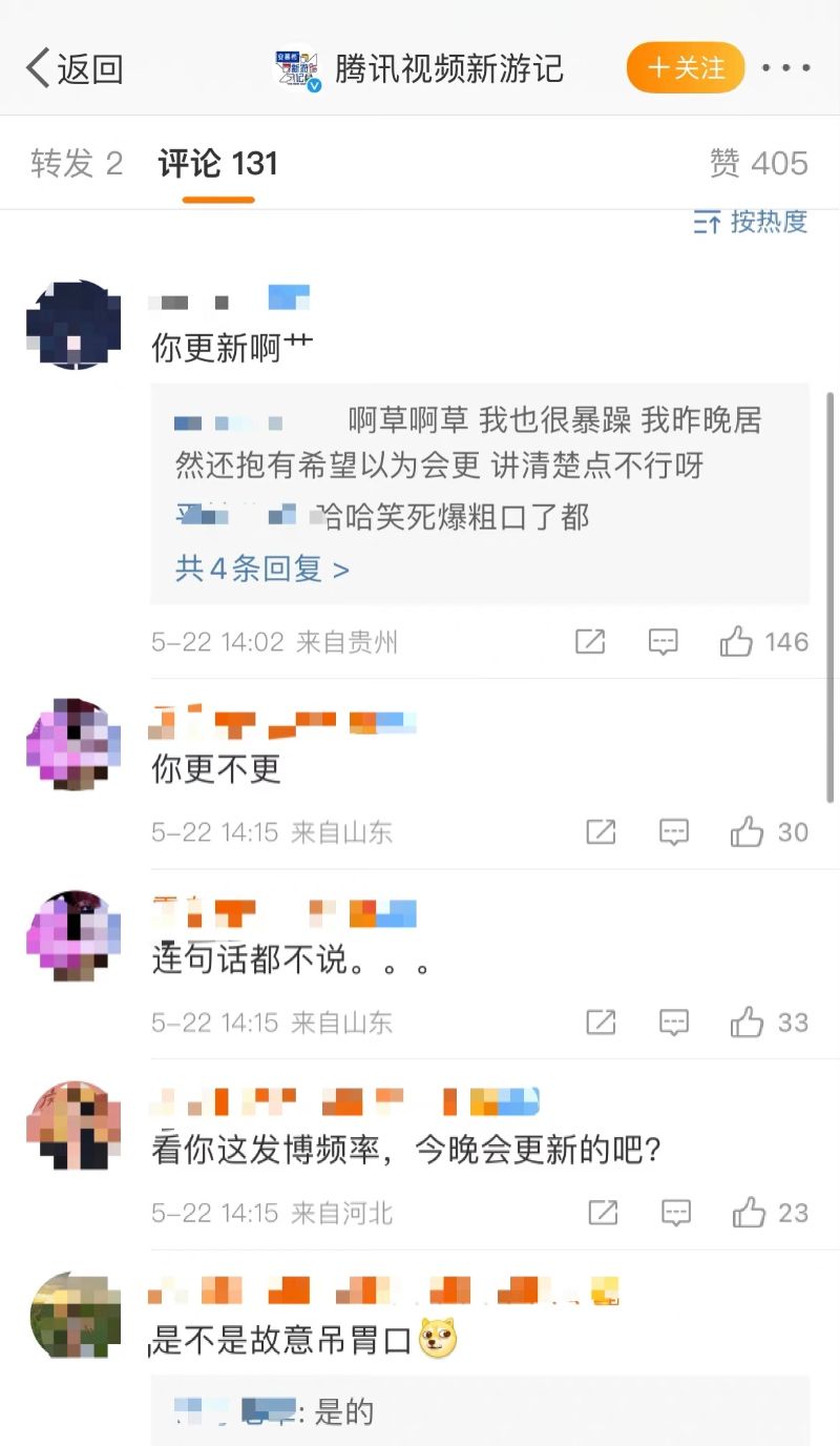 可是一連3天過去,官方每天都在放往期花絮,而粉絲則在每條微博底下,都評論什麽時候能更新。