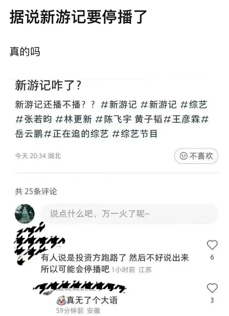 沒想到隨後還有更勁爆的爆料,就是有網傳《新遊記》停播的原因,其實是因為投資方跑路了……