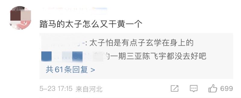 就,這個消息一出,不少網友立刻cue陳飛宇的“太子玄學”!被稱為“美國太子”的陳飛宇,就一直被嘲諷擁有特別玄學,那就是成為娛樂圈反向風向標,只要他拍什麼被禁什麼,不拍什麼就火什麼,成為永遠不紅的玄學體質!像是之前錄製了親子類綜藝《想想辦法吧爸爸》,這類型綜藝就被禁了!棄拍大男主劇之後,《慶餘年》火了!下海拍耽改《皓衣行》,結果耽改被禁了….