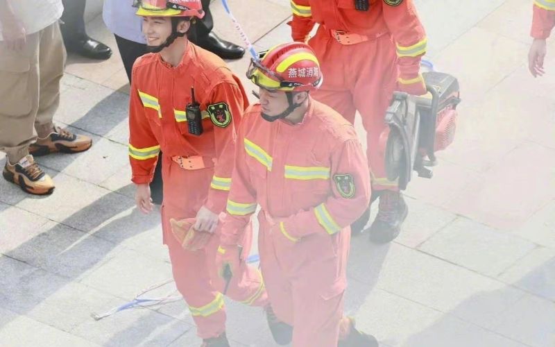 明明就是消防員制服,但硬是被楊洋挺拔的姿態,穿出了走T台的氣勢👇