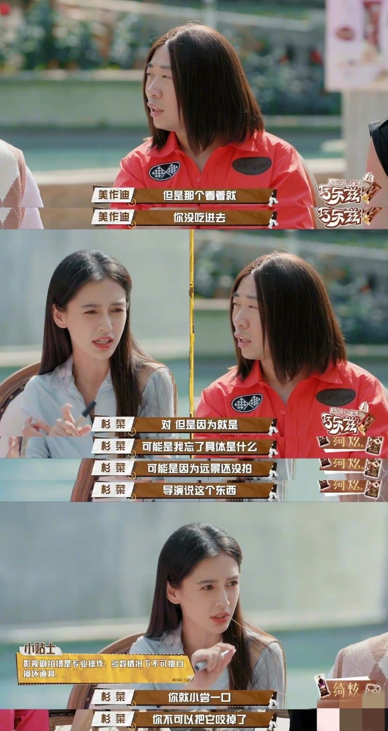 楊穎:「那我也沒有辦法呀,我只能聽導演的,我這麼多戲,拍了這麼多吃飯的東西不看,就看這個,真的很氣!」