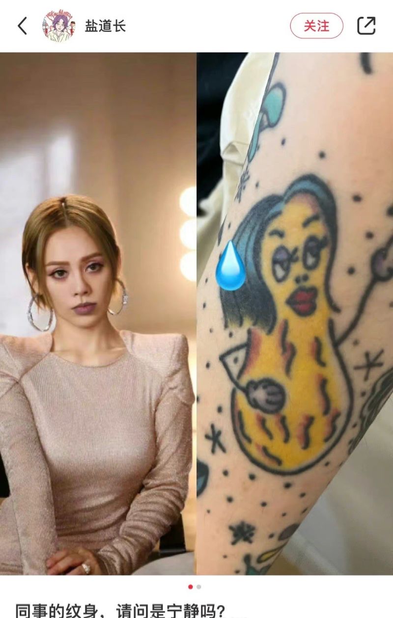 結果沒想到,有網友發現另一個最新撞臉圖,就是她同事的紋身:「請問這是寧靜嗎?」
