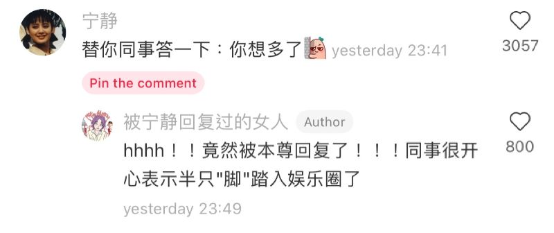 結果沒想到居然得到了本尊翻牌,寧靜到樓主評論區回復:「替你同事答一下:你想多了」哈哈哈哈哈哈哈哈哈哈哈哈哈哈哈哈哈哈哈哈哈哈哈!