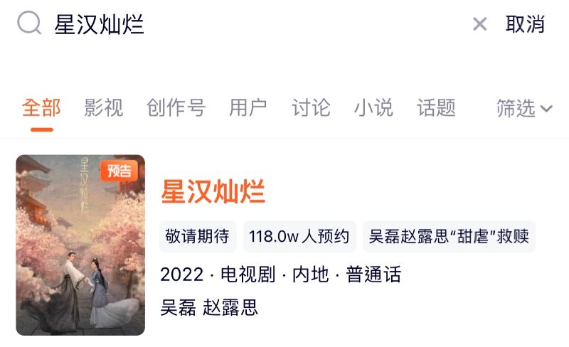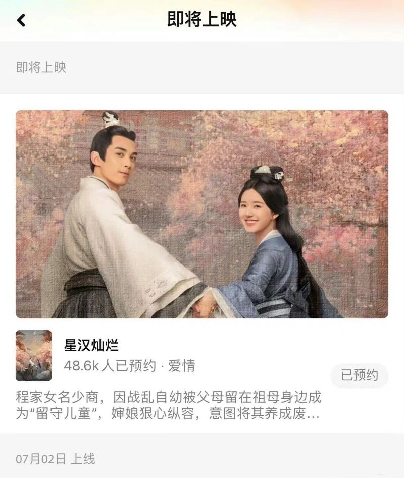 目前《星漢燦爛》在騰訊視頻的預約人數,已經突破100萬👇