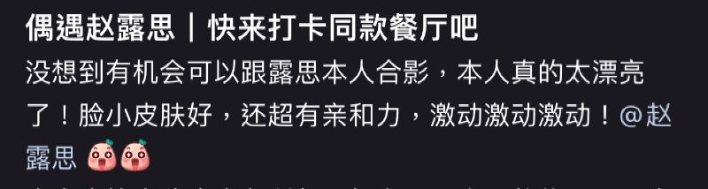 但沒想到另一個同樣分享了偶遇趙露思合照的網友,評論區卻大翻車,先來看看該網友分享的合照,用的是手機的原相機👇