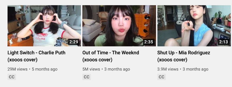 沒錯,這位被網友扒出和朴敘俊同行的網紅,主要在YouTube翻唱歌曲,而她的瀏覽量一點也不低,最新幾支視頻都有好幾百萬點擊率👇