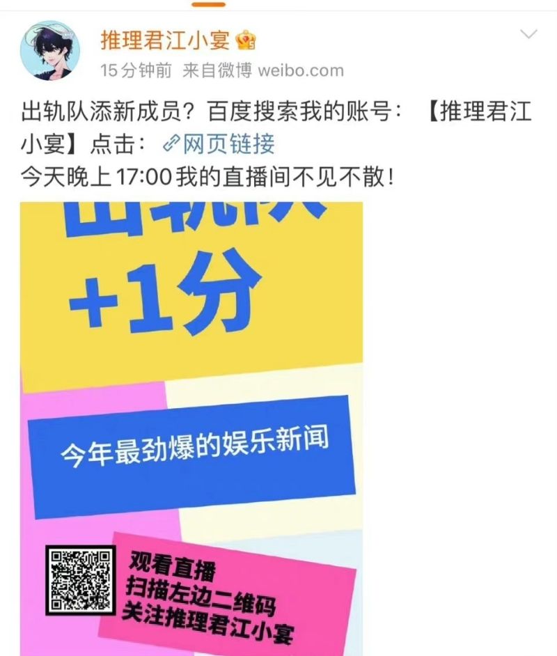 真的是超級無語了…是噠,狗仔「推理君江小宴」在21號早上放出預告,表示內娛出軌隊伍將追加一人!