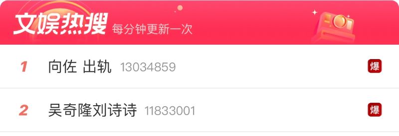 雖然但是,就算爆出是「向佐出軌」,但「吳奇隆和劉詩詩」依然以「爆」的姿態掛在熱搜榜上,也的確很無奈了…