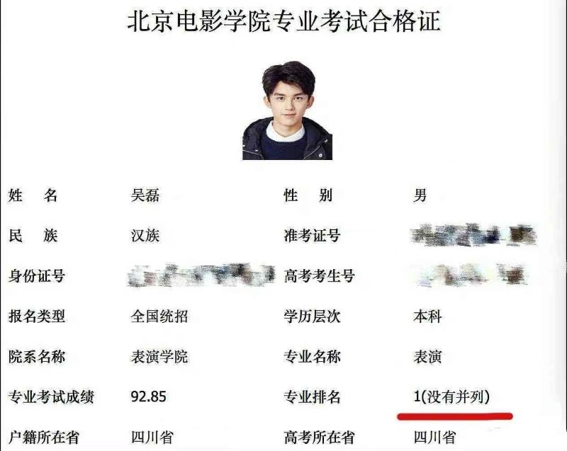 就,這裡也科普一下,吳磊是以表演系第一名的高分考上北電,而且據悉這分數至今依然是最高分標準👇