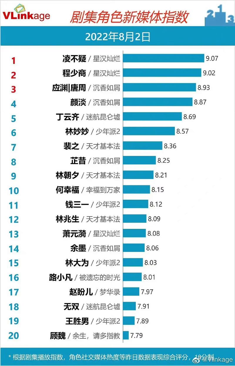 另外,我們疑商夫婦雖然在2號播出的劇集中鬧彆扭,但卻無阻劇迷們的討論熱度,這不,這兩個角色在2號的個人指數都突破9!!!