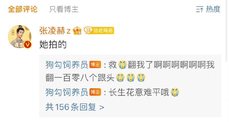 結果被我們張凌赫翻牌回復,僅用3個字「她拍的」,讓長生花CP粉在線瘋了!