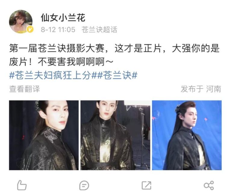 不得不說的是,這一對營業真的超大方,不但直播喊話啥都有,甚至還互拍對方!是噠,兩人今天的最新營業微博,就放出了對方幫自己拍的照片,糖分超充足!來看看,我們王鶴棣叫小蘭花“小胖妞”👇