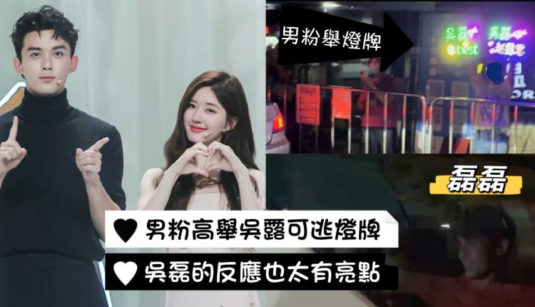 沒想到更經典的是,22號晚上吳磊從《愛情而已》劇組下班時,居然有男粉站在路邊高舉應援燈牌👇