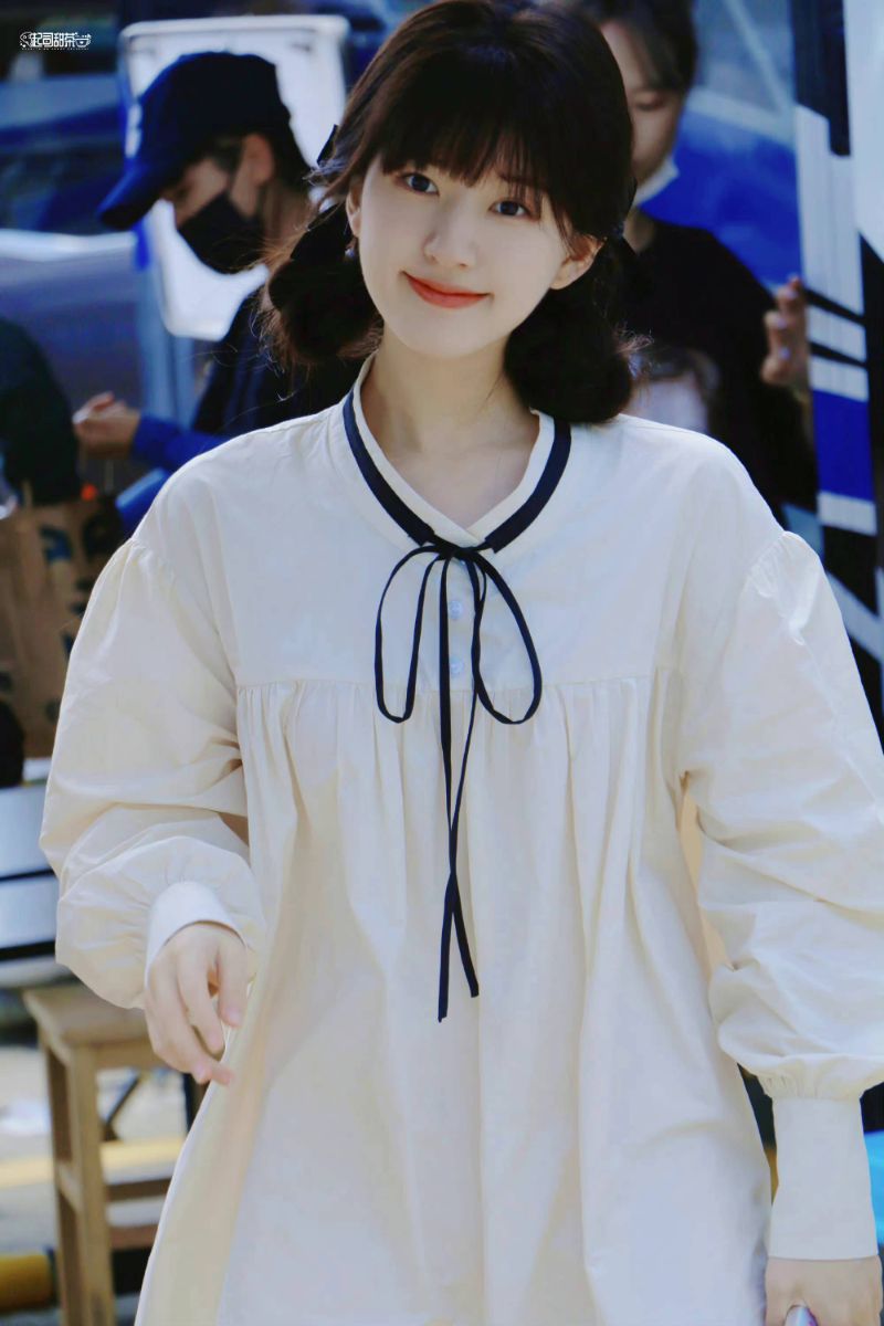 結果沒想到時隔一天,一回到《偷偷藏不住》劇組,我們的肉絲就秒變奶萌的桑稚,尤其最新的蝴蝶結織髮造型路透,真的就是奶糰子一枚啊!!