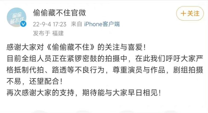不過,隨後「偷偷藏不住」官微發文抵制路透,不少網友都表示這部劇開機了大半個月,路透就天天掛在網上,這下終於肯發聲明了啊?