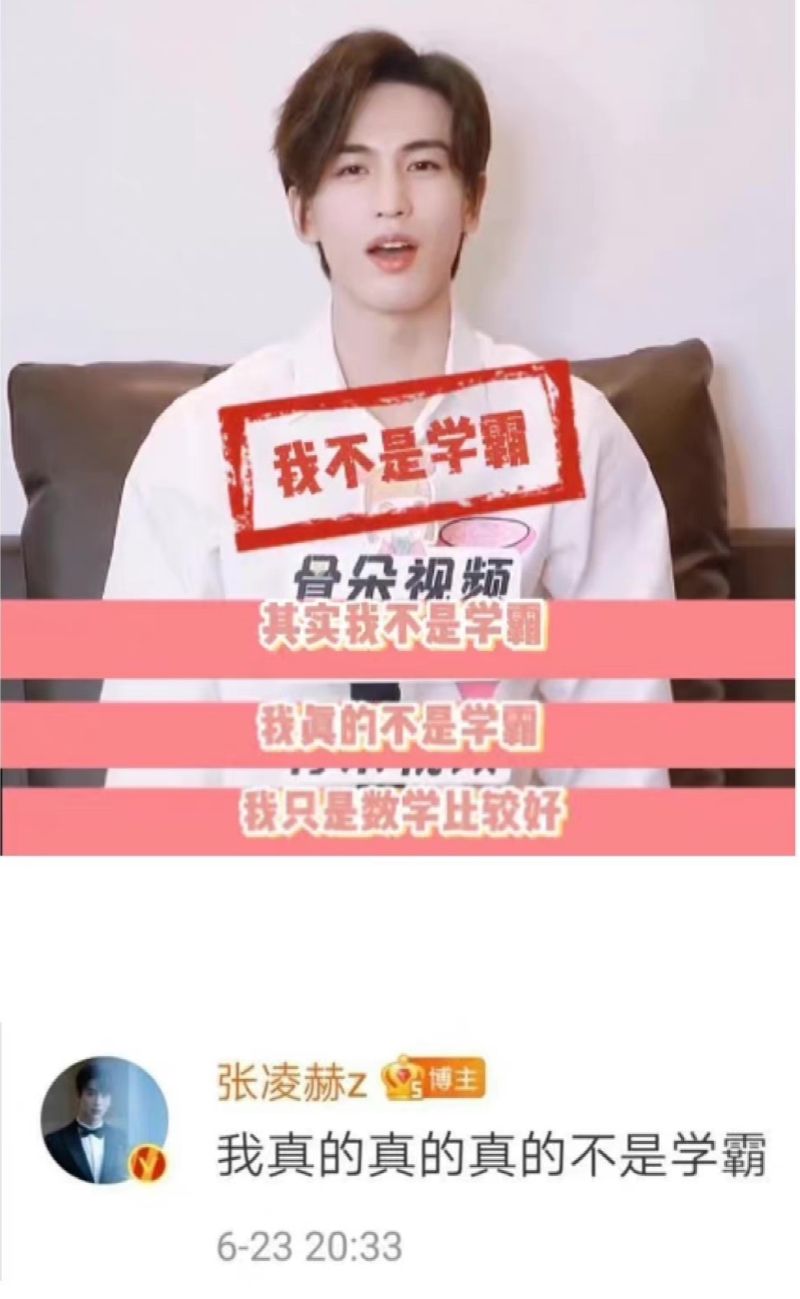 因為對物理產生興趣,他在大學時還加入了航空航天社,完全就是「理工學霸」。但如果提到「學霸」稱號,張凌赫曾多次解釋自己絕不是學霸,頂多就只能算“數學比較好”而已,拒絕捧殺。