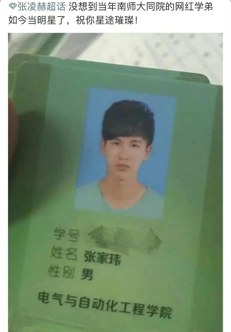 今年25歲的張凌赫本名張家瑋,畢業於無錫頂尖學校天一中學,是無錫當地最好的高中,甚至之後還被保送上南京師範大學,主修電器工程。