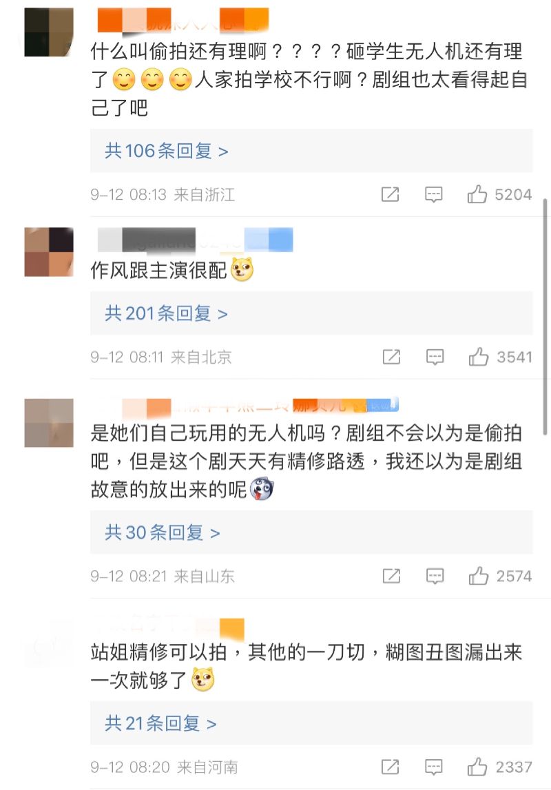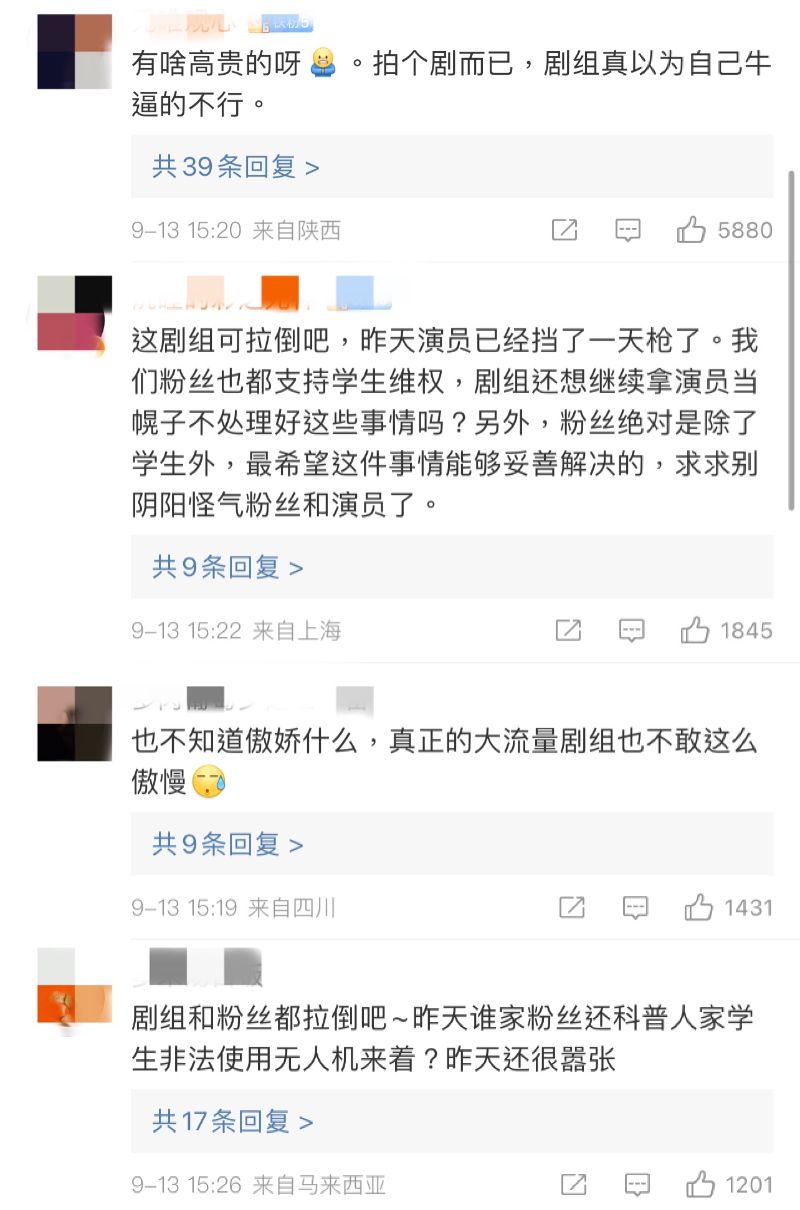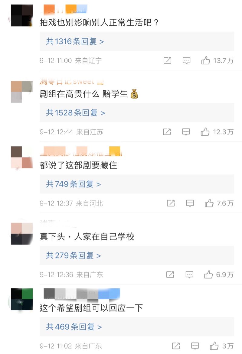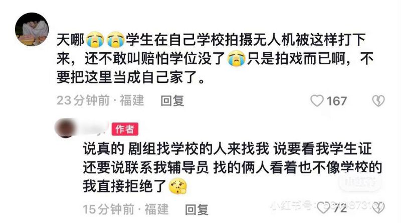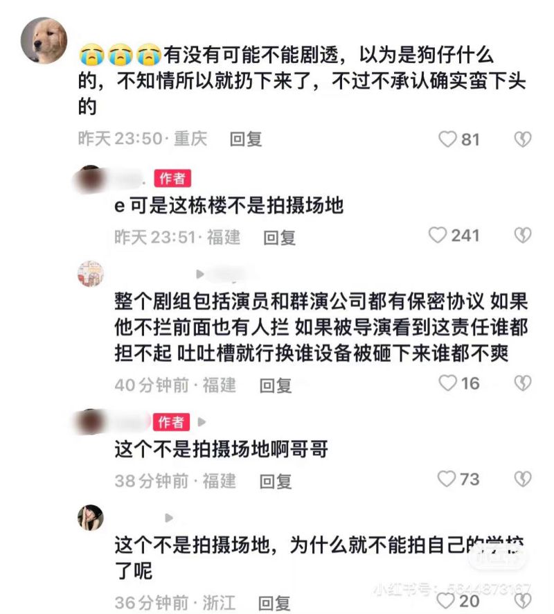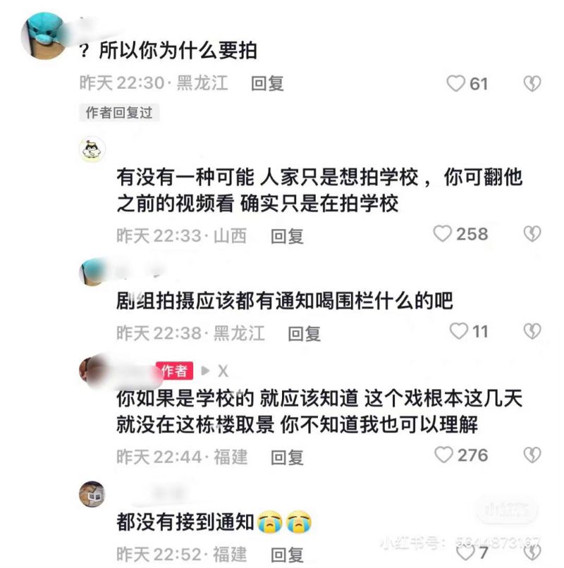 還有該校學生也留言,表示自己好幾次被劇組攔著不能回宿舍👇