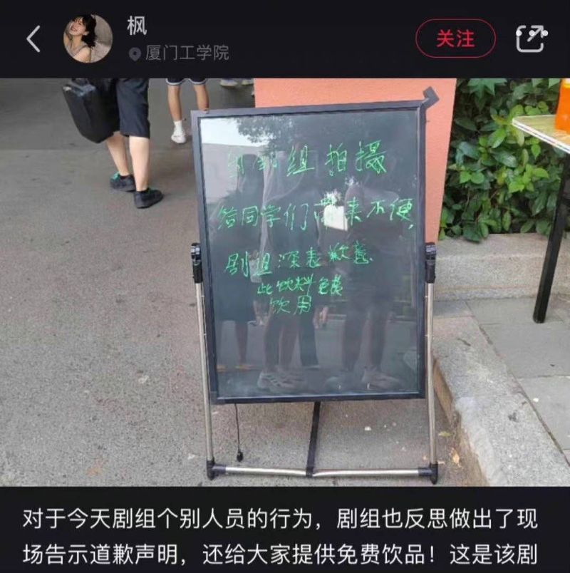 就,劇組所作所為,真的不要上升到演員啊!沒錯,趙露思、陳哲遠主演的《偷偷藏不住》正在趕拍中,為了配合校園劇情,劇組在廈門工學院佈景拍攝👇
