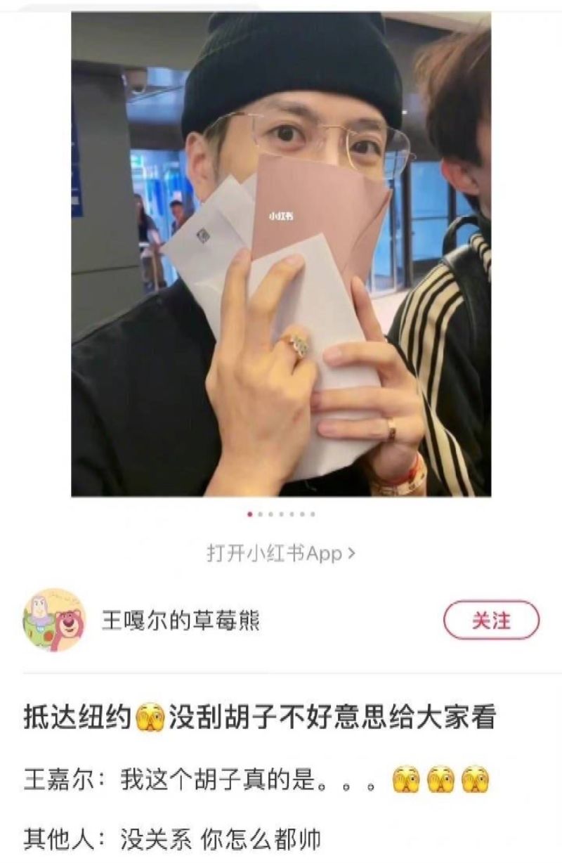 至於為什麼會用紙擋住臉呢?原博主也發出了無水印版,表示那是因為王嘉爾沒有刮鬍子,所以才用信件遮擋自己的臉,連在場對話都發出來了👇