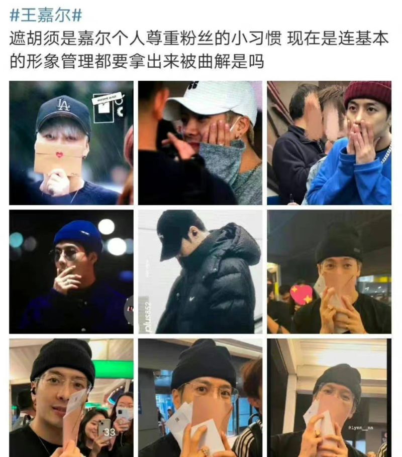 粉絲也發出一系列王嘉爾之前用物件或手遮鬍鬚的照片,明明是尊重粉絲的小習慣,現在也被曲解成“心虛”👇