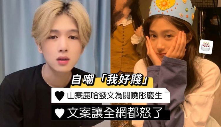 結果不但微博號依然還用「鹿哈」,讓人更無語的是,除了發文為關曉彤慶生,居然連慶生文案,都直接複製了鹿晗的,甚至還效仿艾特了關曉彤👇