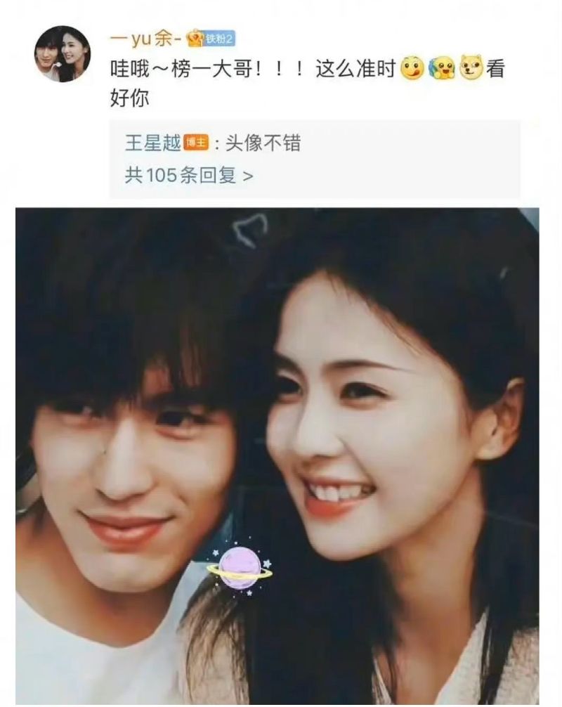 白鹿生日,男二王星越發文祝福,而王星越回復了其中一個用了「白鹿張凌赫」CP照當頭像的網友,表示:「頭像不錯。」