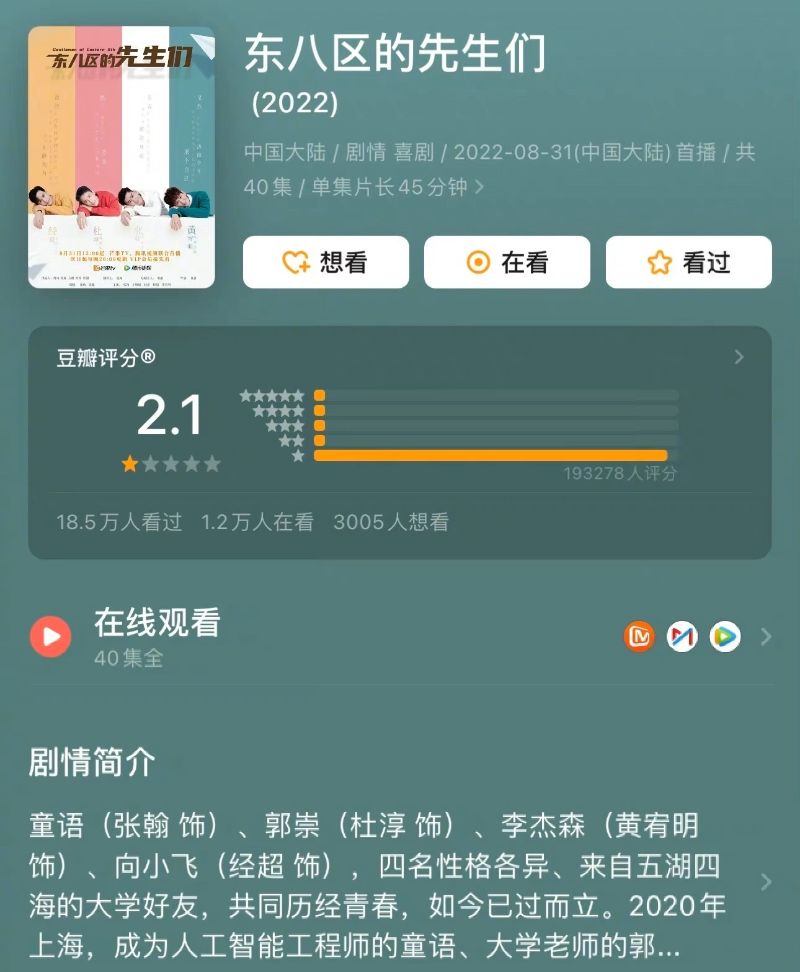而這部劇在豆瓣的評分,更一度跌至2.1分,創造歷史最低評分劇。