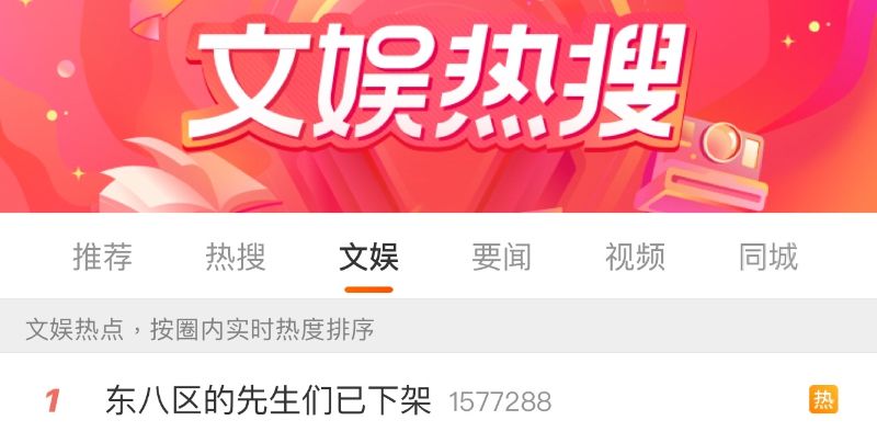 「東八區的先生們已下架」更是衝上了熱搜第一名👇