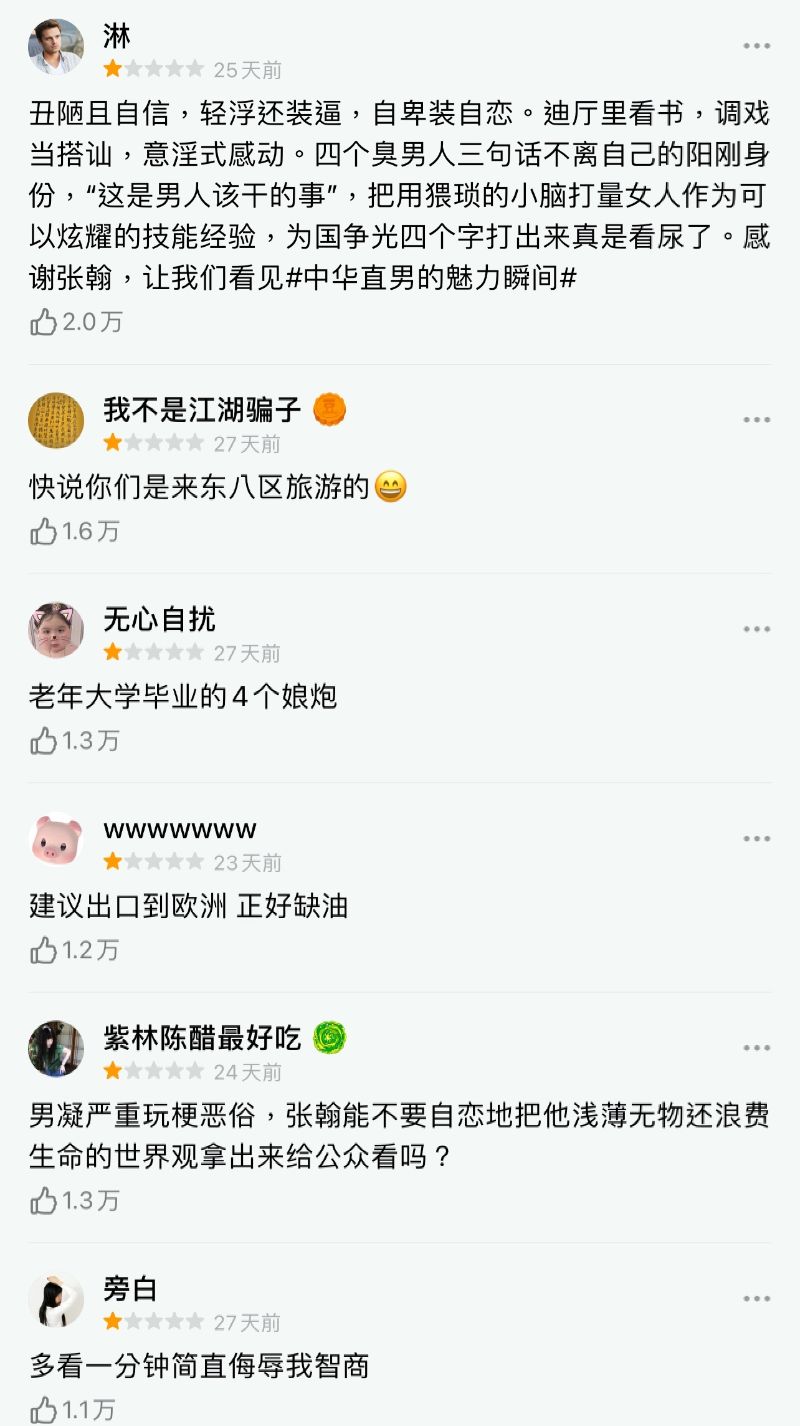 對於《東八區的先生們》的下架,可以說是全網歡慶,更有網友表示:「控制不住疫情,但控制住了張翰」!