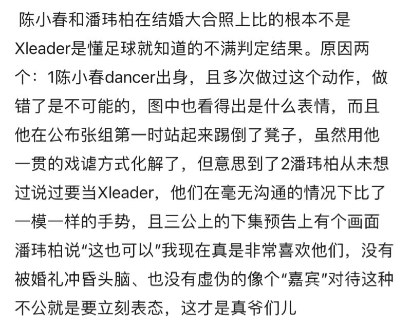 就,還有網友認為,陳小春和潘瑋柏在大合照時,比的根本不是XLeader的手勢,而是表達不滿的意思👇