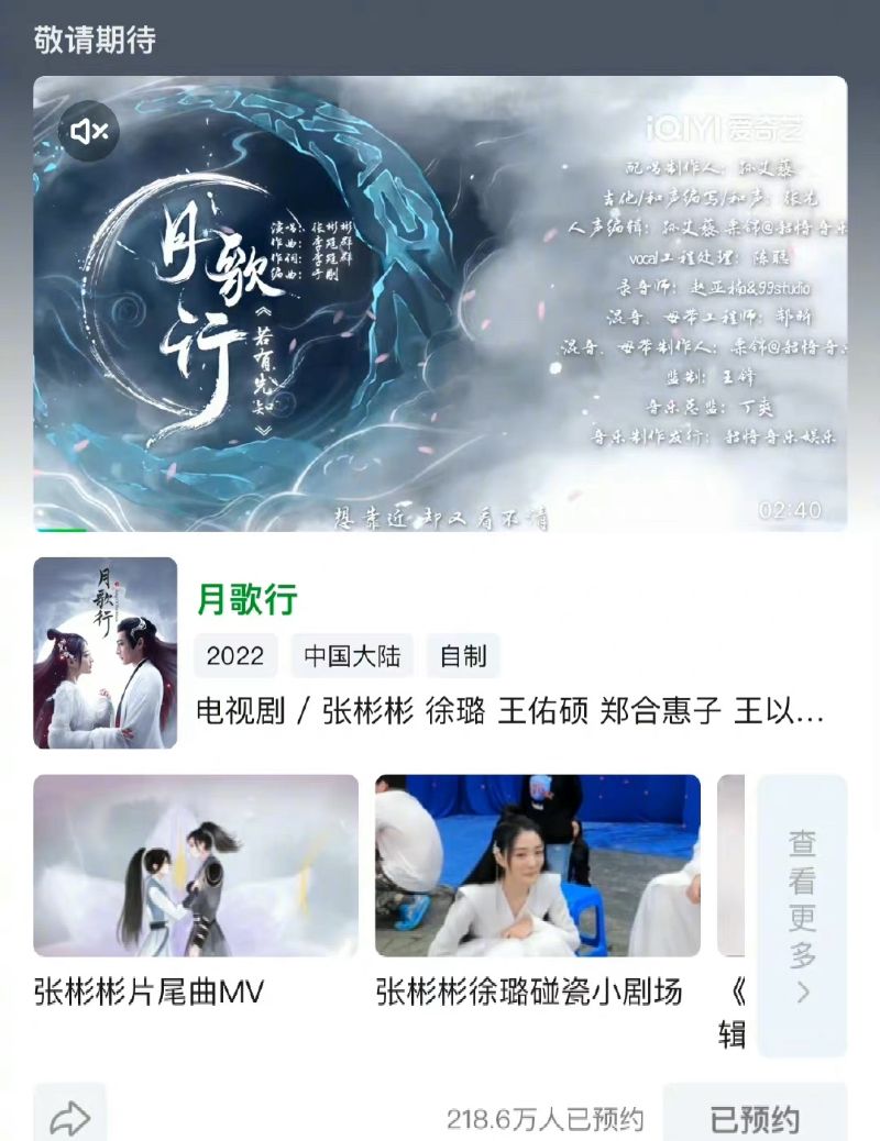 沒錯,如果僅從預約人數來看,目前人數最多的,不是在C位的《寧安如夢》,也不是王鶴棣的《浮圖緣》,居然是張彬彬和徐璐的《月歌行》!!!!這部仙俠愛情劇從2021年1月殺青至今,終於被排進了待播劇名單,看來真的不少人都在蹲等了啊!