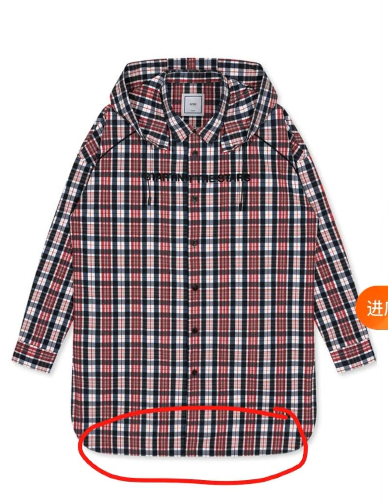 這兩件衣服左右兩邊的下擺處,都有一道看著不多的白色格子線👇