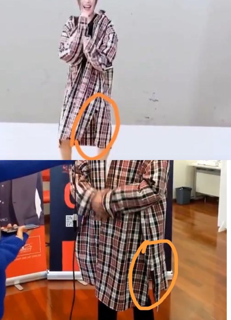 兩件衣服的左右兩邊開叉處,格子顔色分別都是黑白黑👇