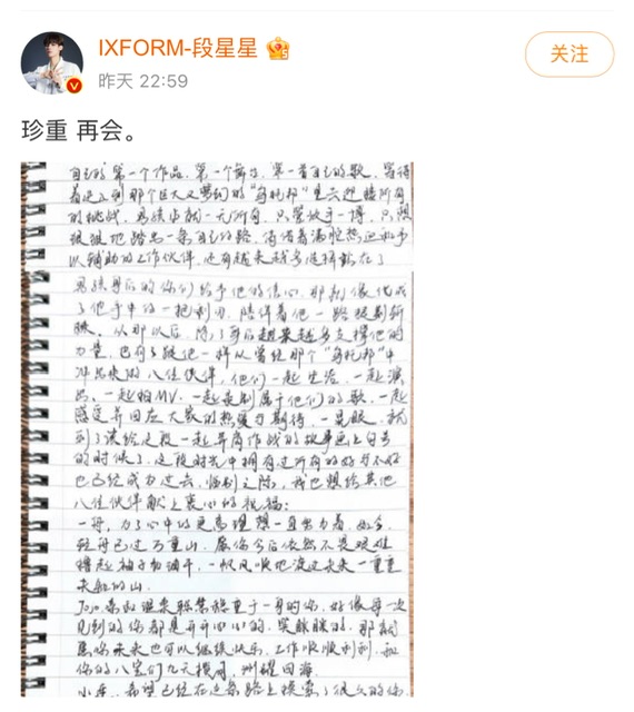 在這封告別信開始前,我想先給大家誠摯地道個歉,作為一名在團成員,我在處理近期工作和個人生活問題上失職,讓一路支特著我的閃閃們、給予過我幫助的人們、我的團隊、親人和朋友們擔心和失望,我深感抱歉,對不起大家。