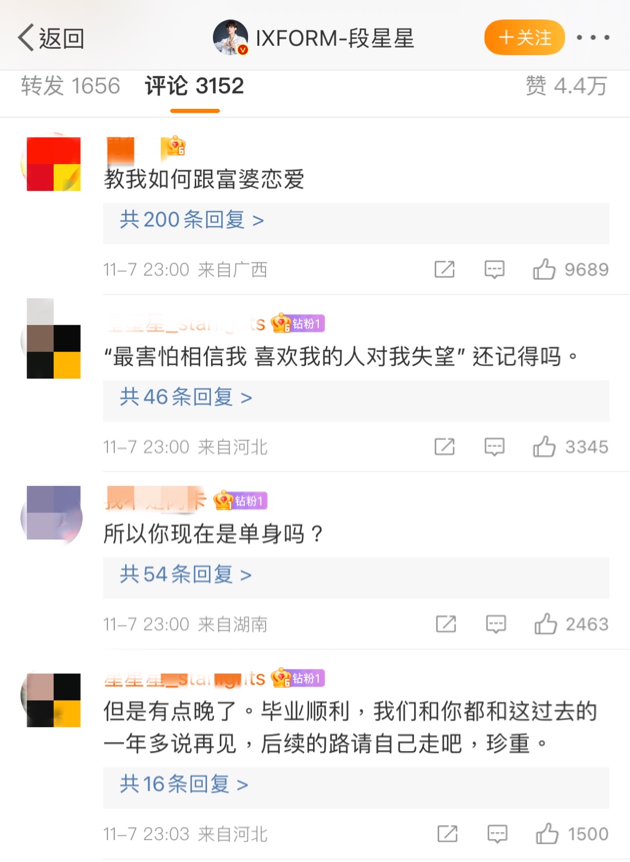 先來看網友熱評,鐵粉在脫粉,而熱評第一問怎麼追富婆👇🏻