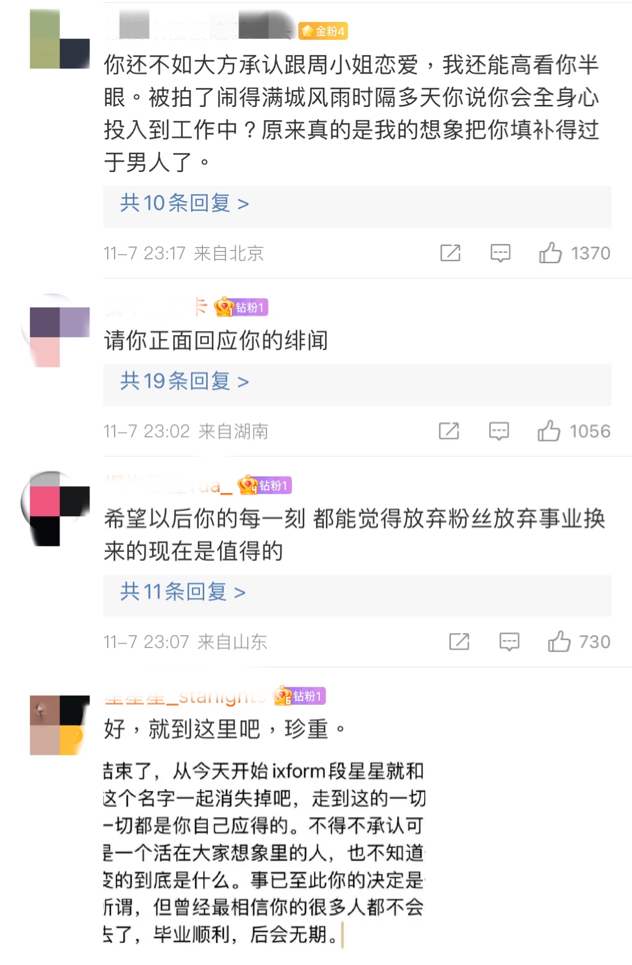 當中傳出和周揚青戀情的段星星,也發了長信,一開始就先道歉,接著就給成員們一一發了祝福,網友神總結如下: