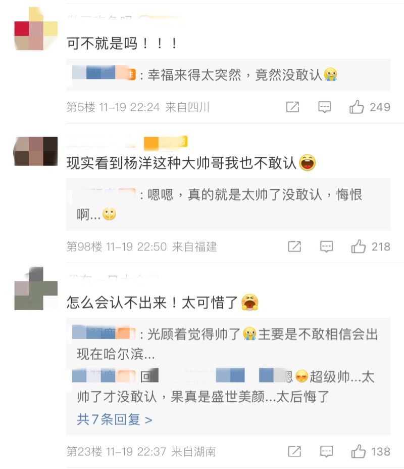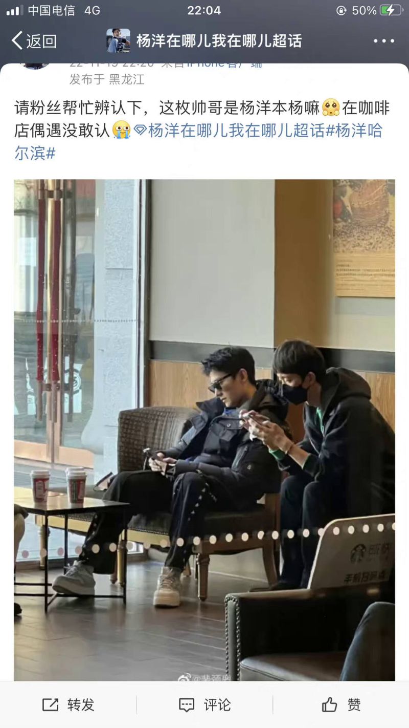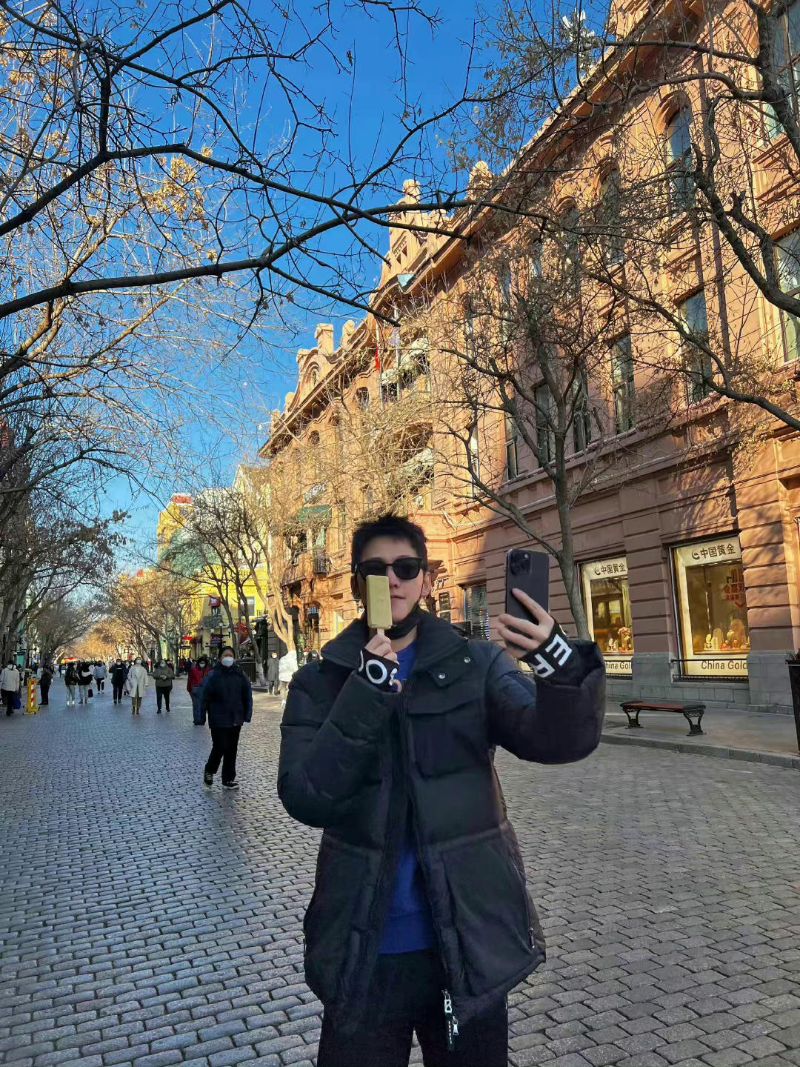 但,事實上,早在楊洋發自拍之前,就有路人網友在哈爾濱遇到了我們的大神…👇