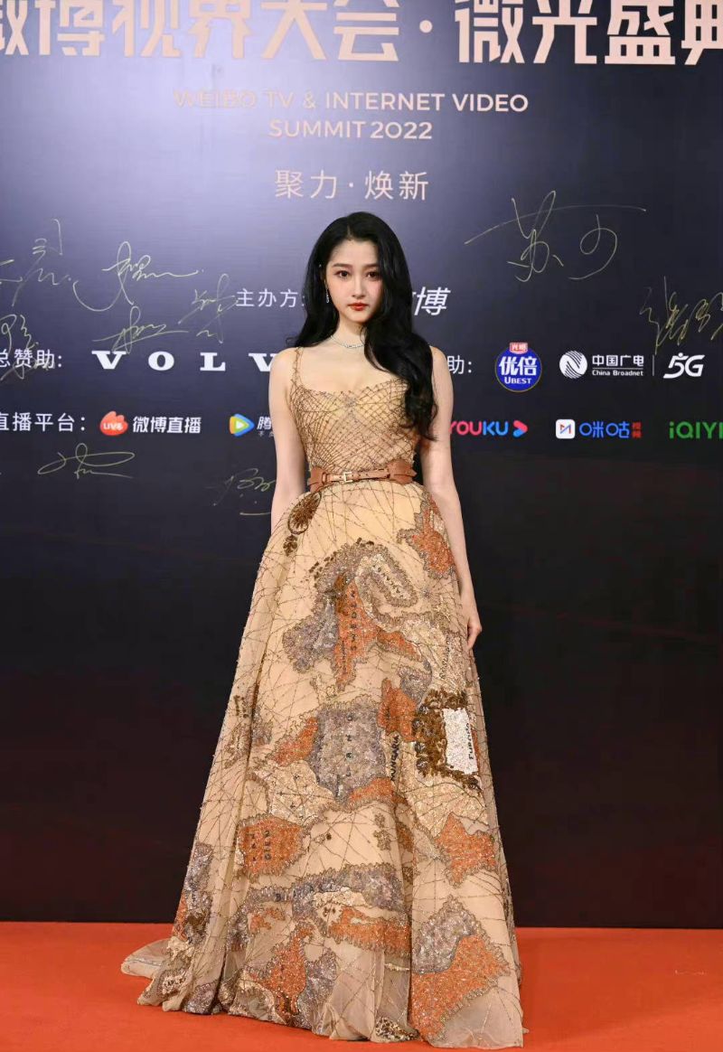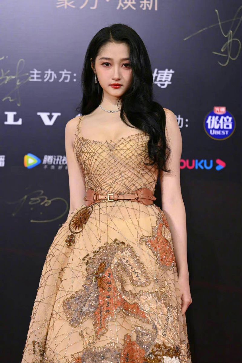 一向是紅毯關注點的關曉彤,落葉棕刺繡禮服別致大氣,今晚好評!