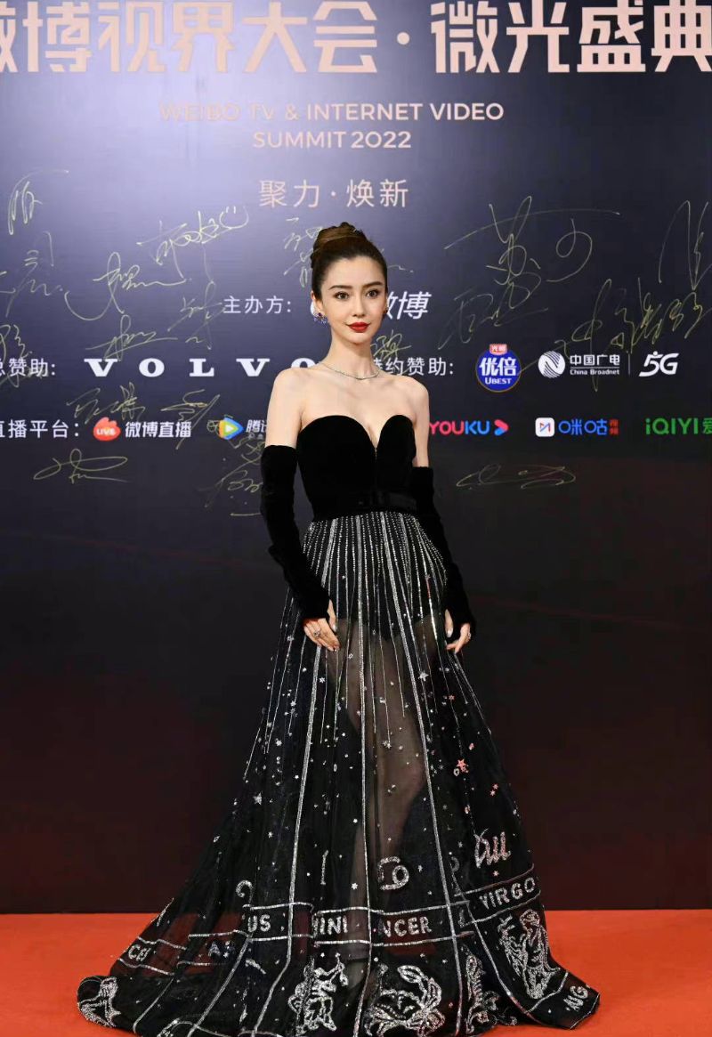 Angelababy果然是紅毯定海神針,黑絲絨透視長裙複古美麗!