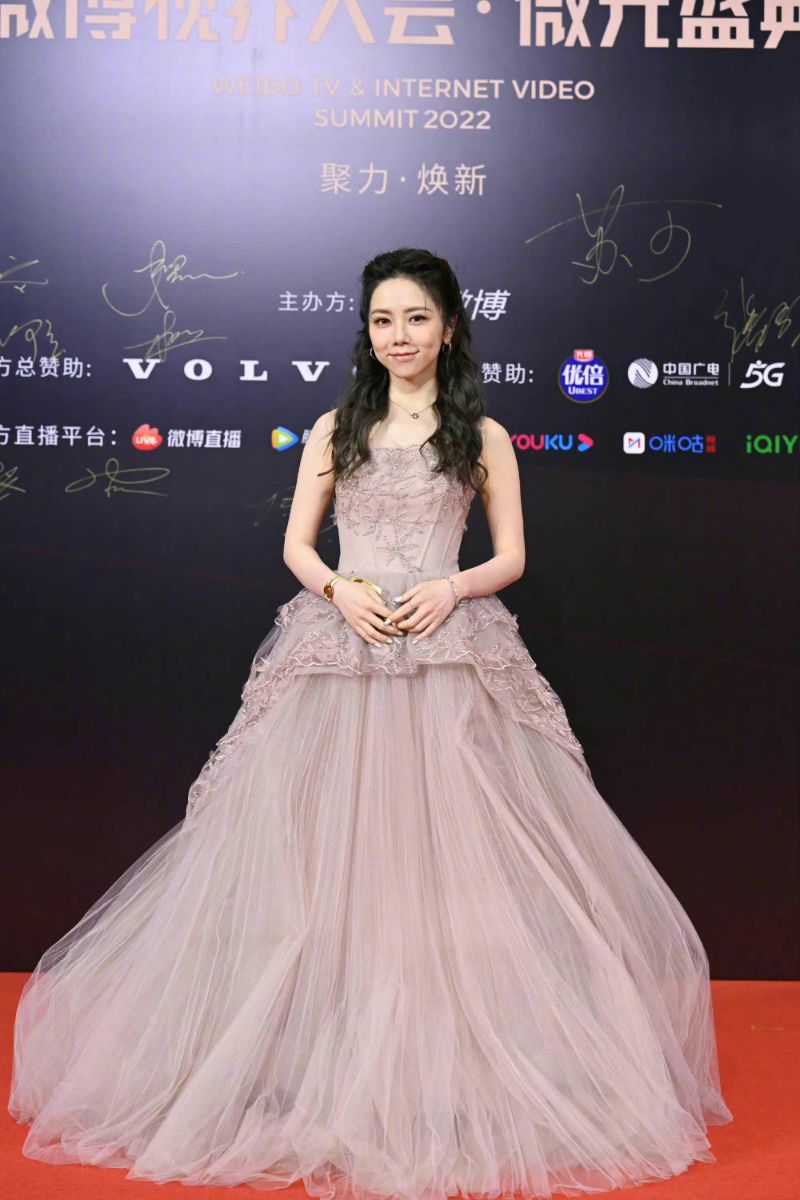 楊超越穿起絲絨霧霭藍禮服,展現少見的性感👇