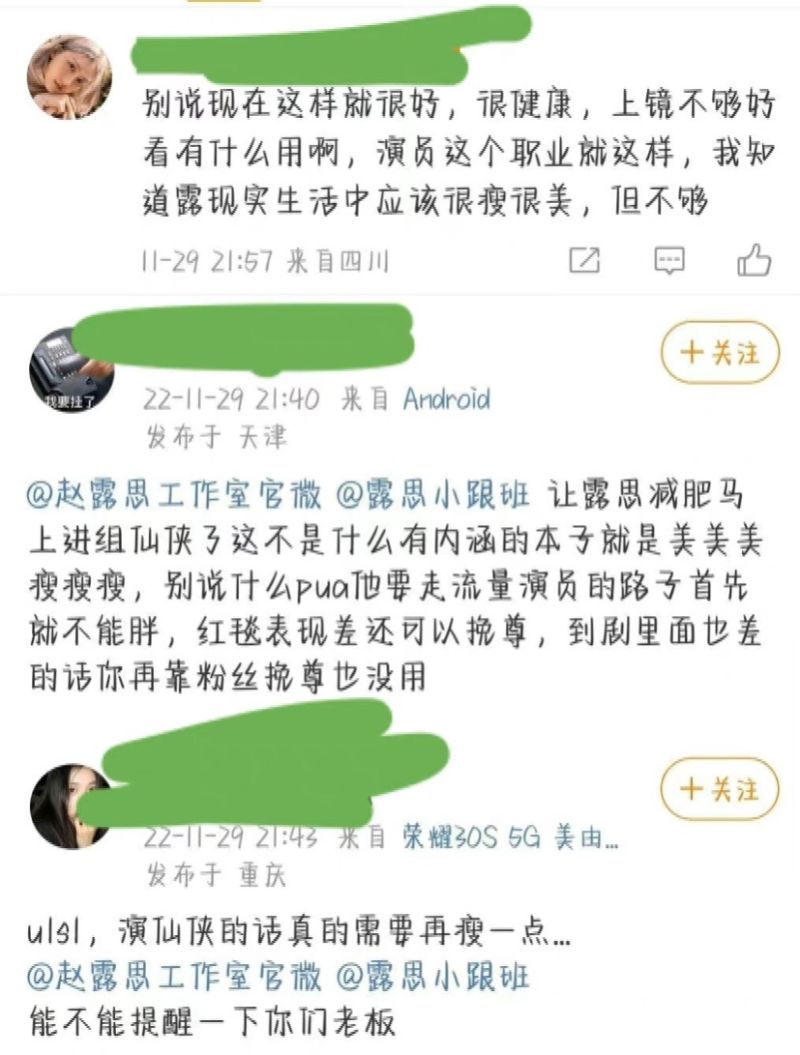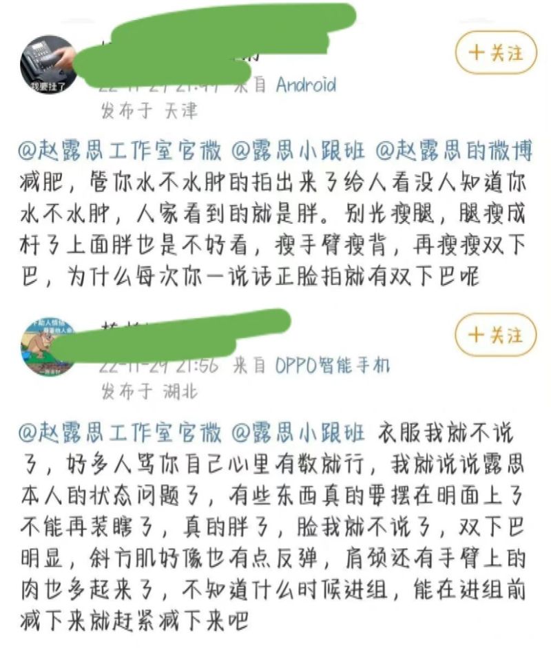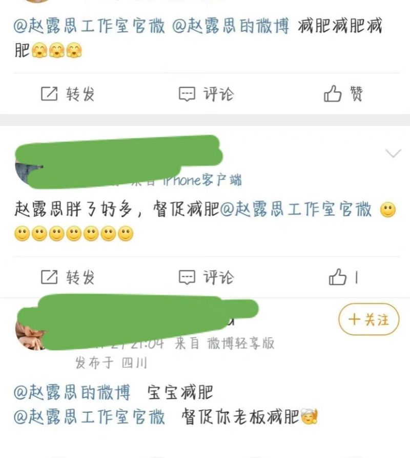 更有不少粉絲直接發文艾特工作室和趙露思,依然重複:「減肥減肥減肥!!!」