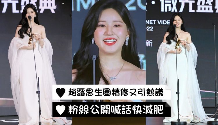 另外,在內場的她穿了一襲飄逸長裙,但精修和生圖一樣被嘲修很大,甚至有人說這張精修圖,把肉絲修成鄭爽了👇