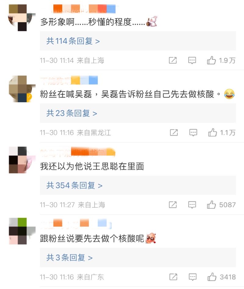 由於吳磊必須先去做核酸,因此就隔空比劃了做核酸的動作來回應粉絲👇