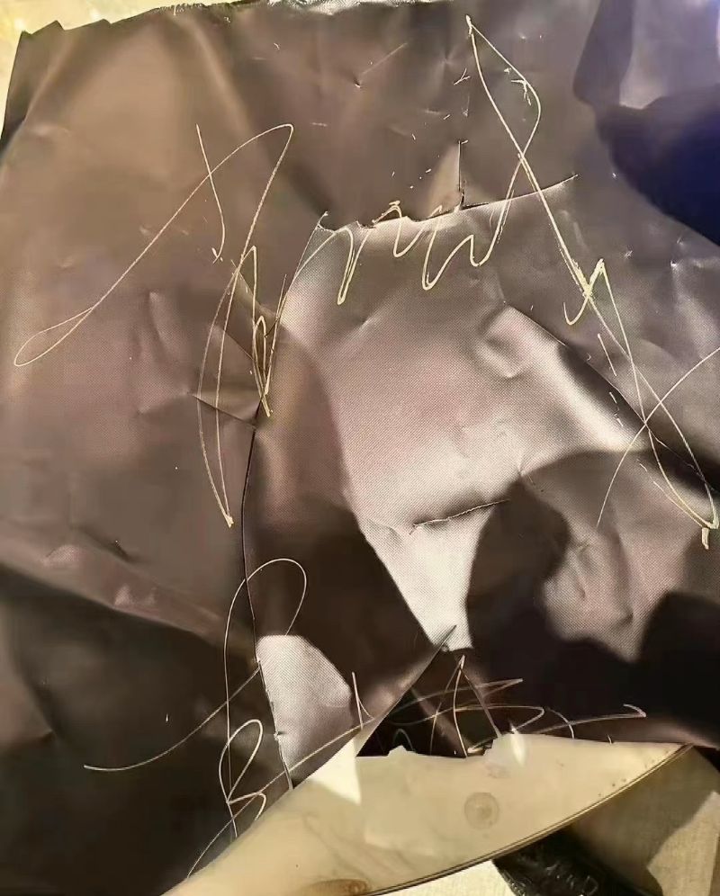 但事實上,肖戰直接用了簽名筆在佈景板上“刻”了下去…所以才會出現明明用的是銀色筆,但他的簽名卻是黑色凹下去的情況,這波危機處理,滿分💯